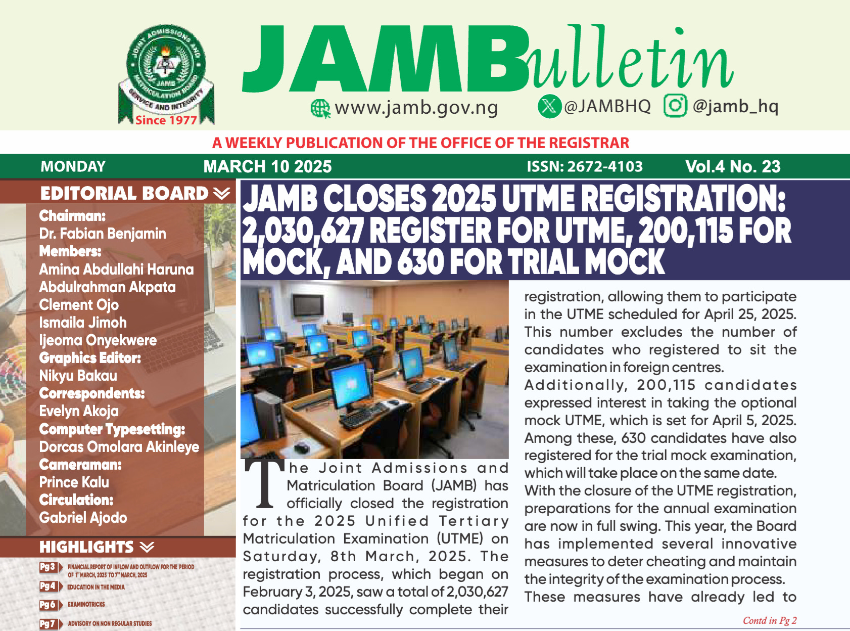 Akintayo Eribake. 1.4m candidates for 2015 JAMB. Vanguard News https://www.vanguardngr.com/2015/01/1-4m-candidates-2015-jamb/ (2015).